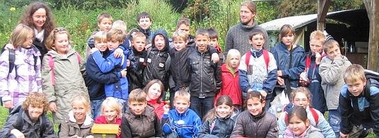 Zu Besuch bei der Bienenzuchtstation Breiker Höfe im Natur-schutzgebiet zwischen Scholven und Gladbeck war die Klasse 4 a der Grundschule Im Brömm. 28 Kinder, begleitet von Lehrerin Anja Fischer, wurden dort von den Imkern Christoph Reinders und Heinz Ilgner empfangen.